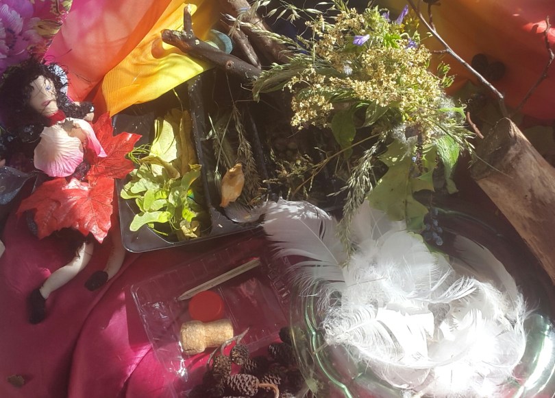 I found one of the fairies I made out of laddered tights, and she seemed drawn to the drying wildflowers…
