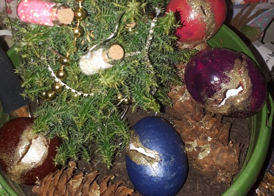 Flicking through a vintage magazine, I saw a guide to making eggshell garlands for the tree. This reminded me of